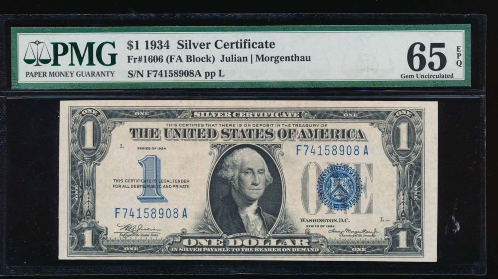 One 1934 $1 Silver Certificate PMG 65EPQ.