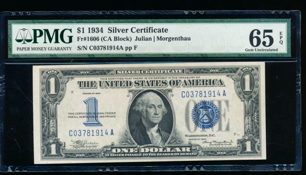 One 1934 $1 Silver Certificate PMG 65EPQ.
