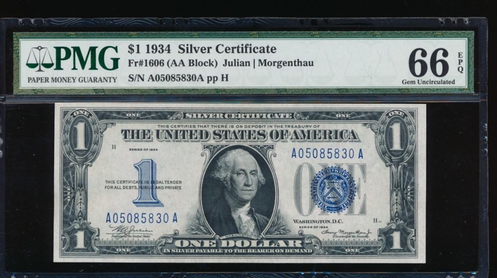 One 1934 $1 Silver Certificate PMG 66EPQ.