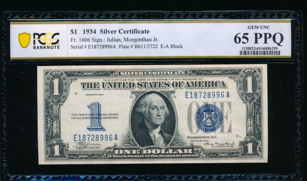 One 1934 $1 Silver Certificte PCGS 65PPQ.