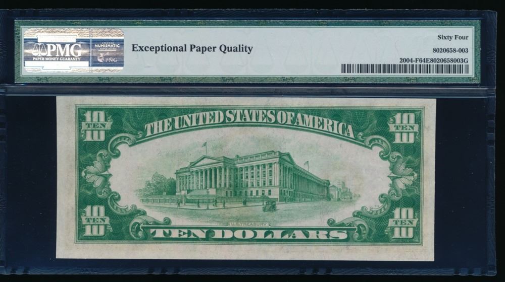 One 1934 $10 Atlanta Federal Reserve Note PMG 64EPQ.