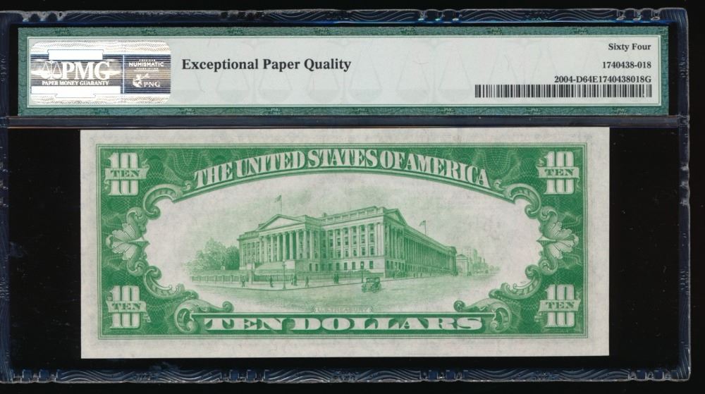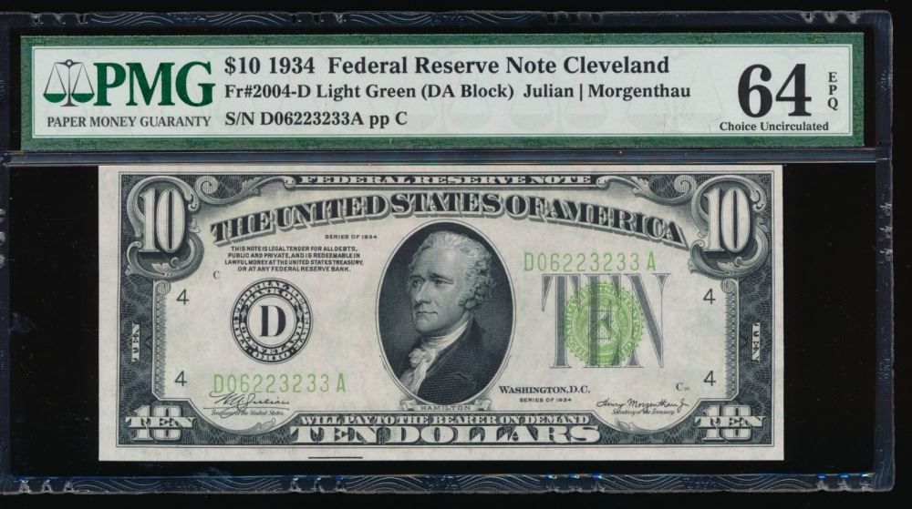 One 1934 $10 Cleveland Federal Reserve Note PMG 64EPQ.