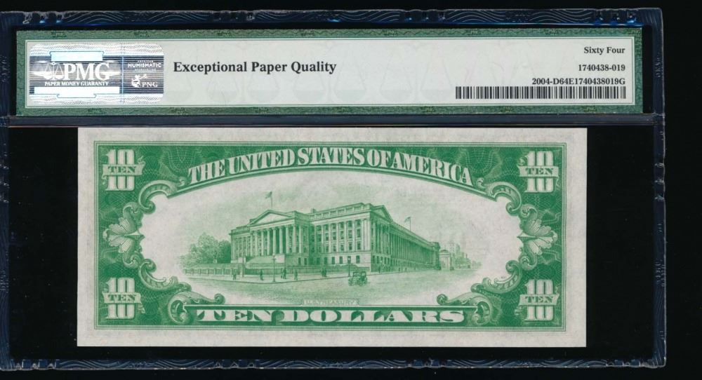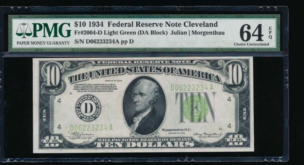 One 1934 $10 Cleveland Federal Reserve Note PMG 64EPQ.