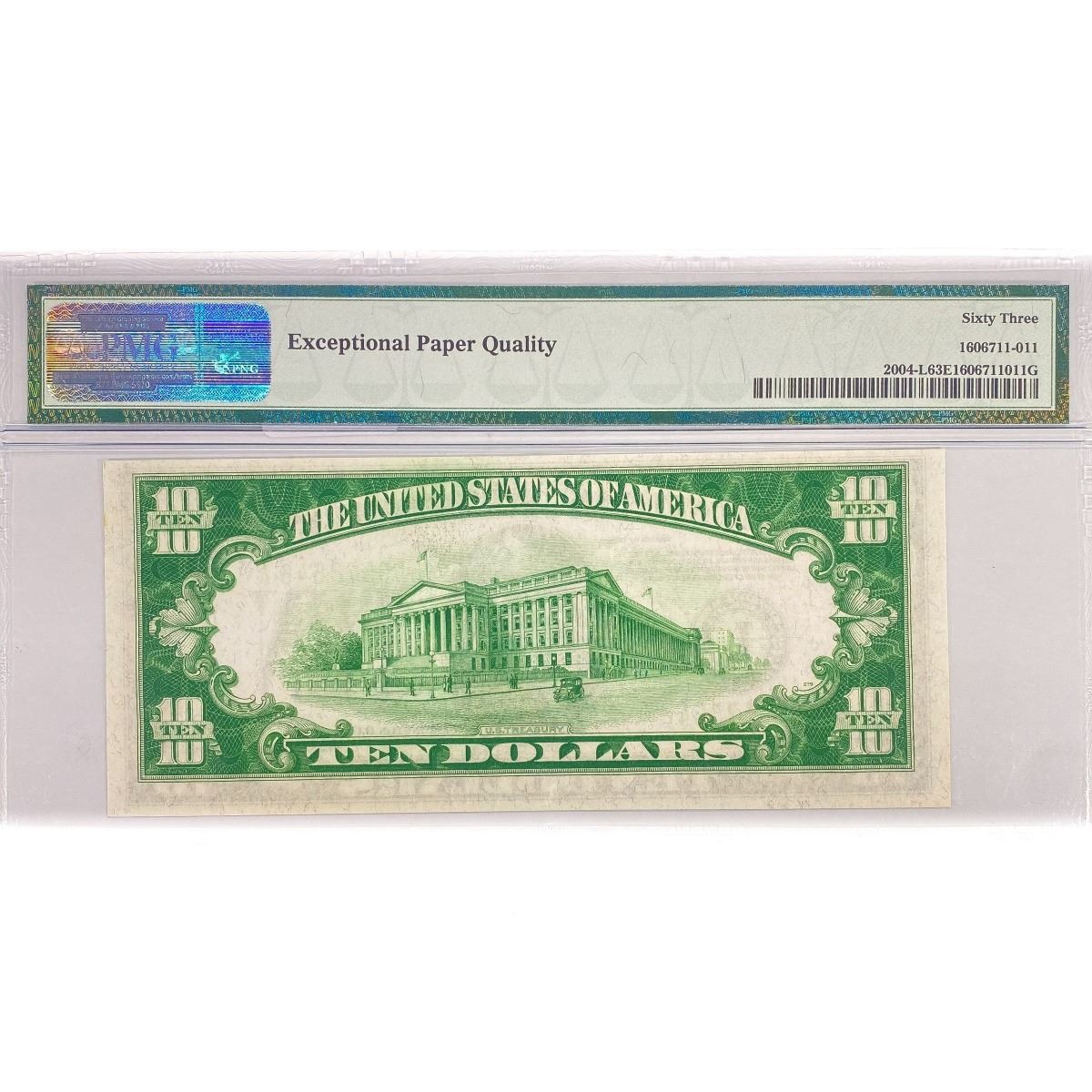 1934 $10 Fed Reserve Note PMG Ch UNC 63