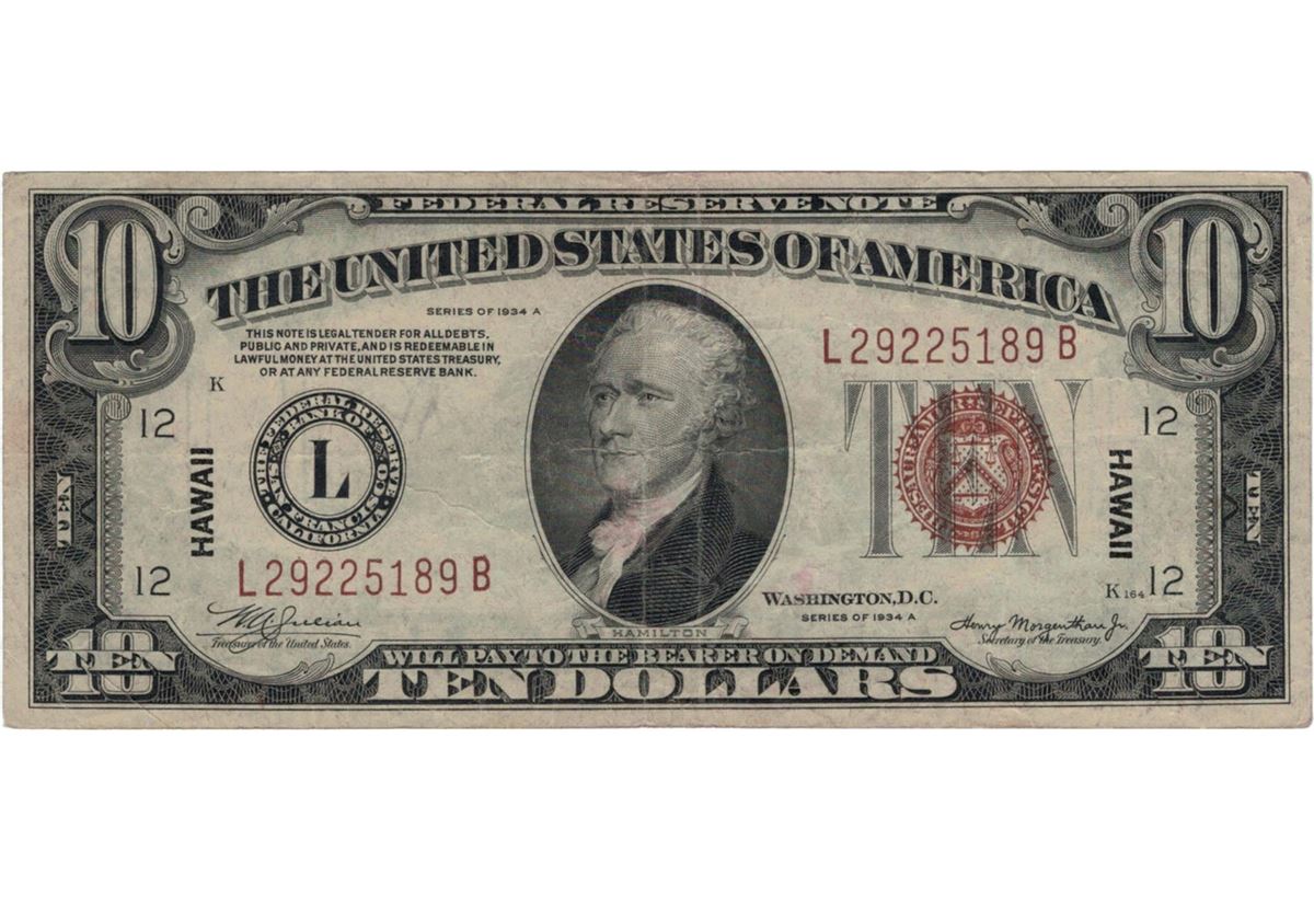 1934 $10 Hawaii Federal Reserve Note Currency.