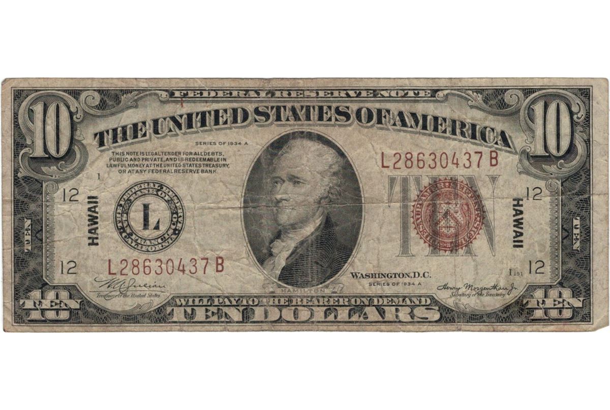 1934 $10 Hawaii Federal Reserve Note Currency.