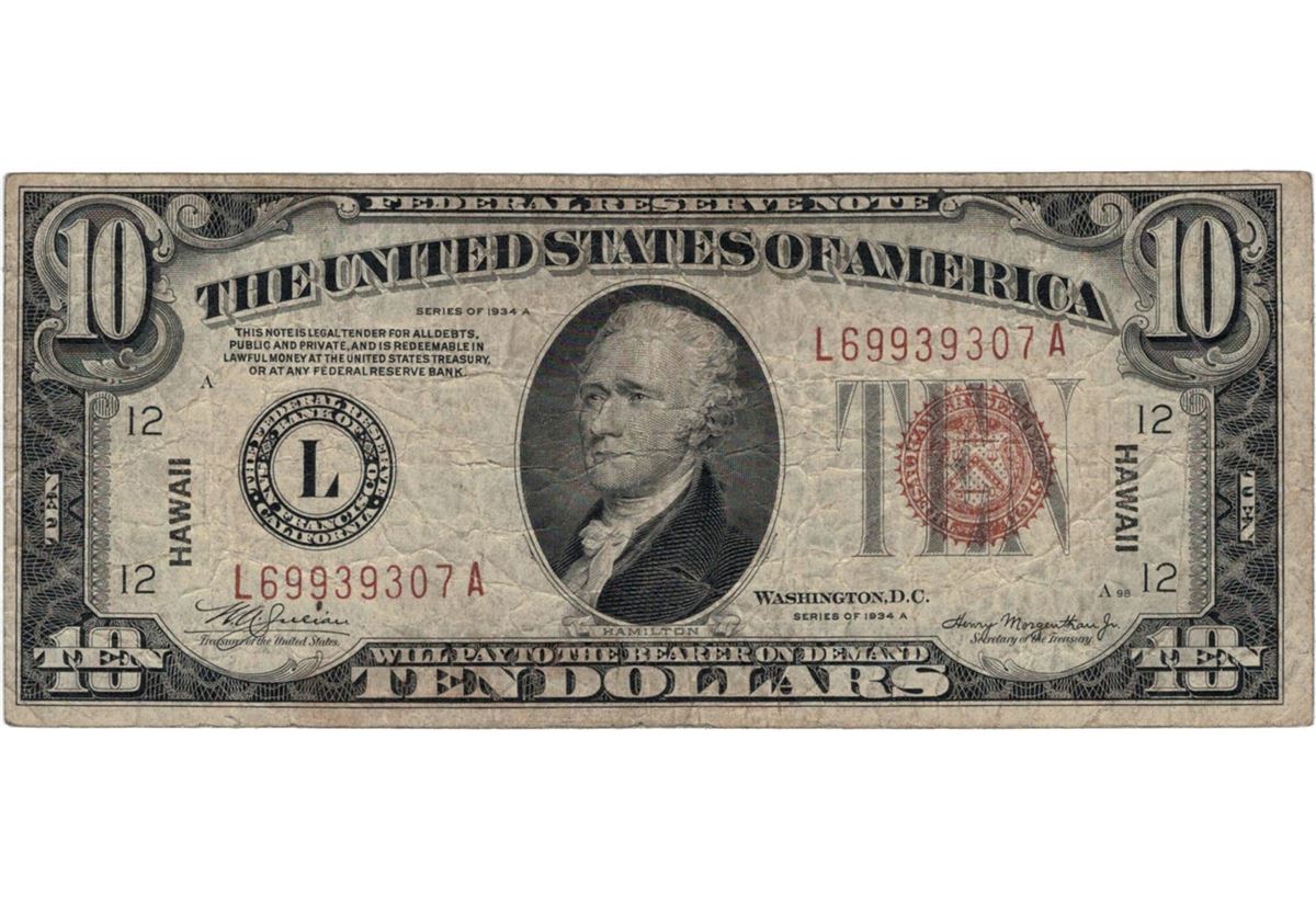 1934 $10 Hawaii Federal Reserve Note Currency.