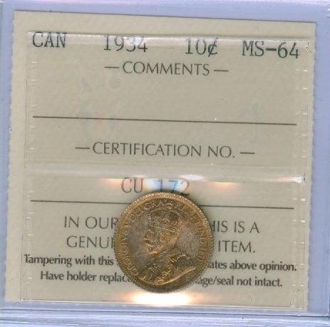 1934 10¢ ICCS MS64, superbly toned!