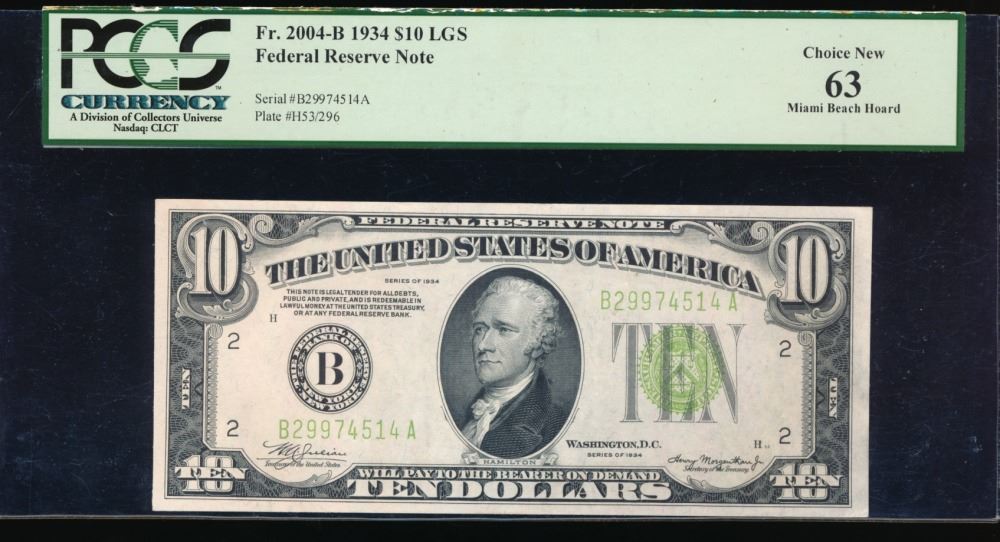 One 1934 $10 New York Federal Reserve Note PCGS 63.