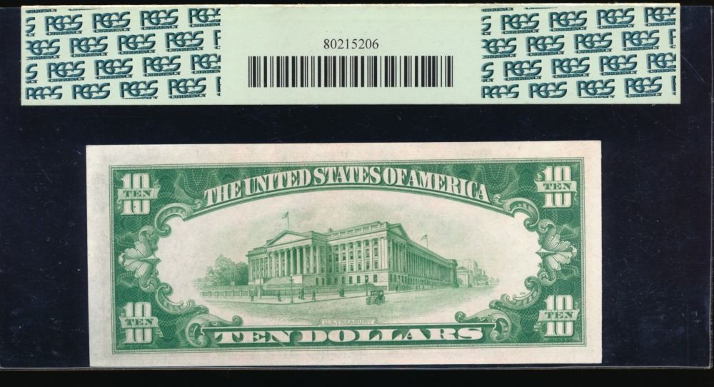 One 1934 $10 New York Federal Reserve Note PCGS 63.