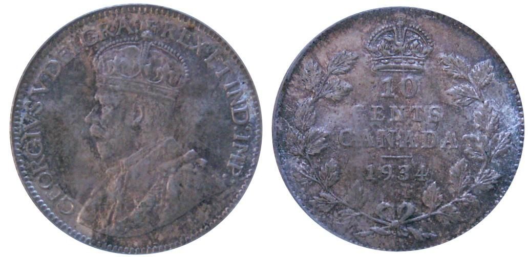 1934 10¢ PCGS MS66. Pristine lustre with pinkish shades. Excellent strike with clean fields and nice surfaces.