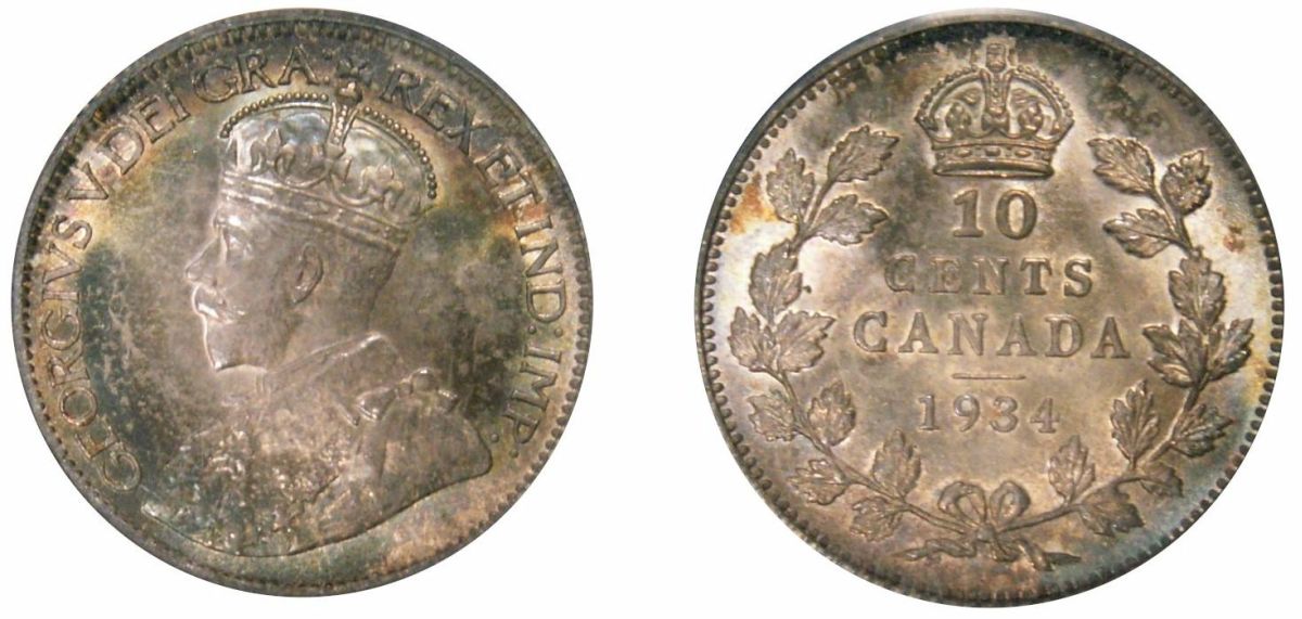 1934 10¢ PCGS MS66. Scarce in such high grade