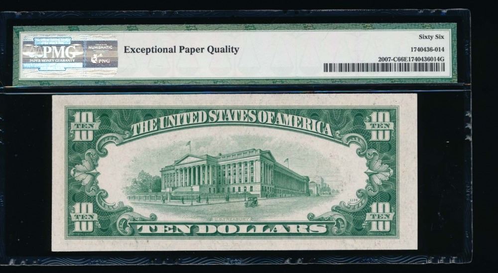 One 1934 $10 Philadelphia Federal Reserve Note PMG 66EPQ.