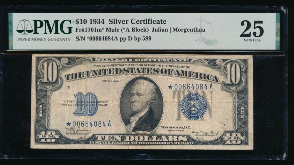 One 1934 $10 STAR Silver Certificate PMG 25.