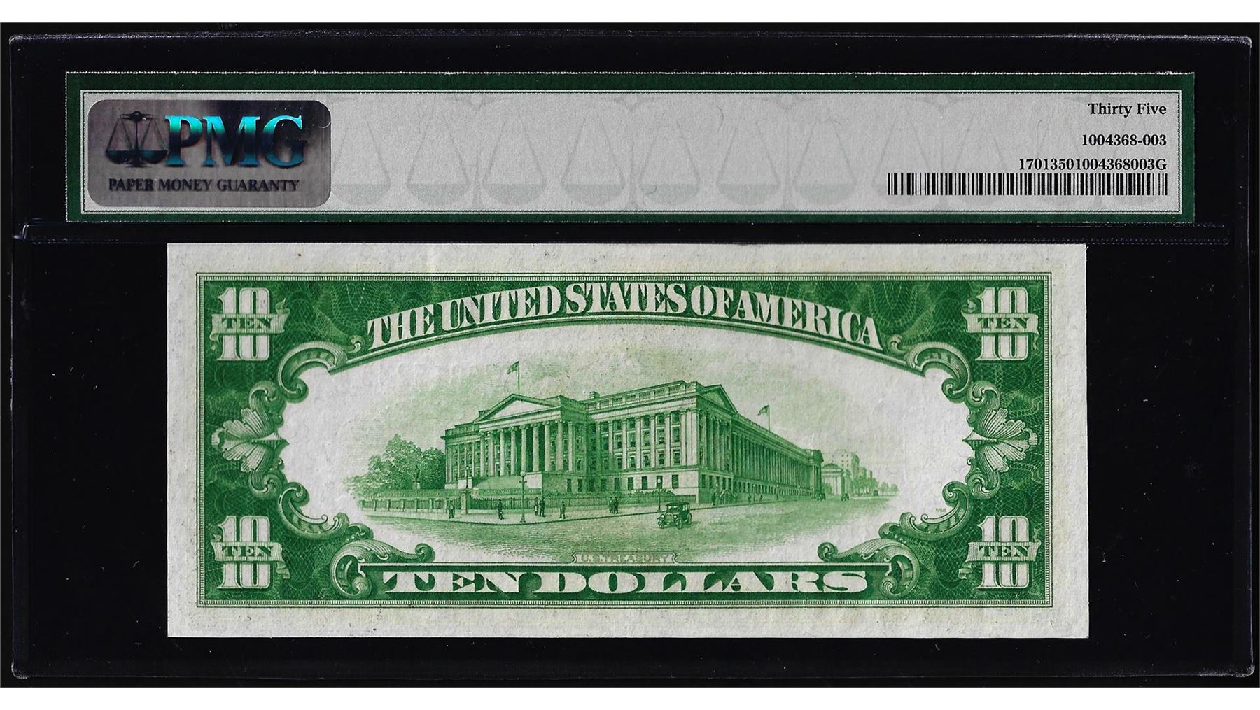 Any coins sold referencing a third-party grading service are sold AS IS without any express or implied warranty. Notes sold referencing a third-party grading service are sold AS IS without any express or implied warranty. Grading, condition or other attributes of any lot may have a material effect on its value, and the opinion of others, including third-party grading services may differ with that of BKA. BKA shall not be bound by any prior or subsequent opinion, determination, or certification by any grading service. Bidder specifically waives any claim to right of return of any item because of the opinion, determination, or certification, or lack thereof, by any grading services. Third-party graded notes are not returnable for any reason whatsoever.