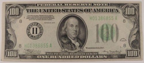 1934 $100.00 FEDERAL RESERVE NOTE, NICE CIRCULATED CONDITION