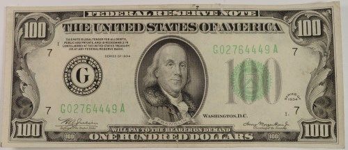 1934 $100.00 FEDERAL RESERVE NOTE, NICE CIRCULATED CONDITION