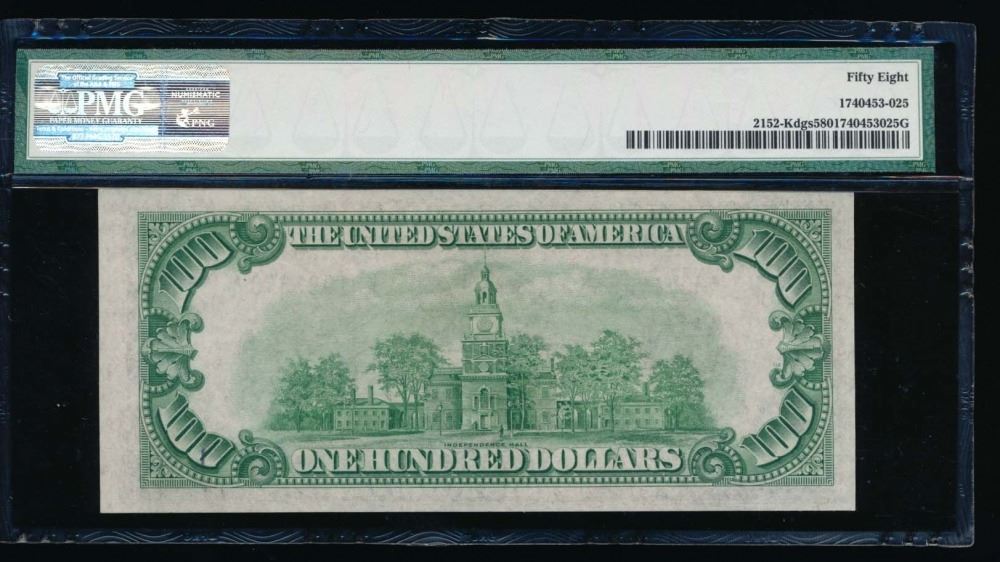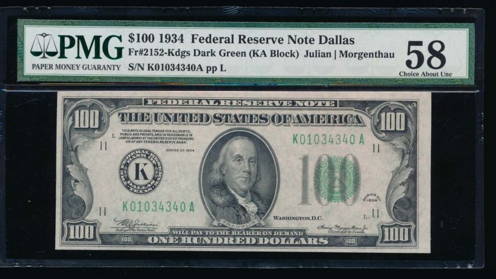 One 1934 $100 Dallas Federal Reserve Note PMG 58.