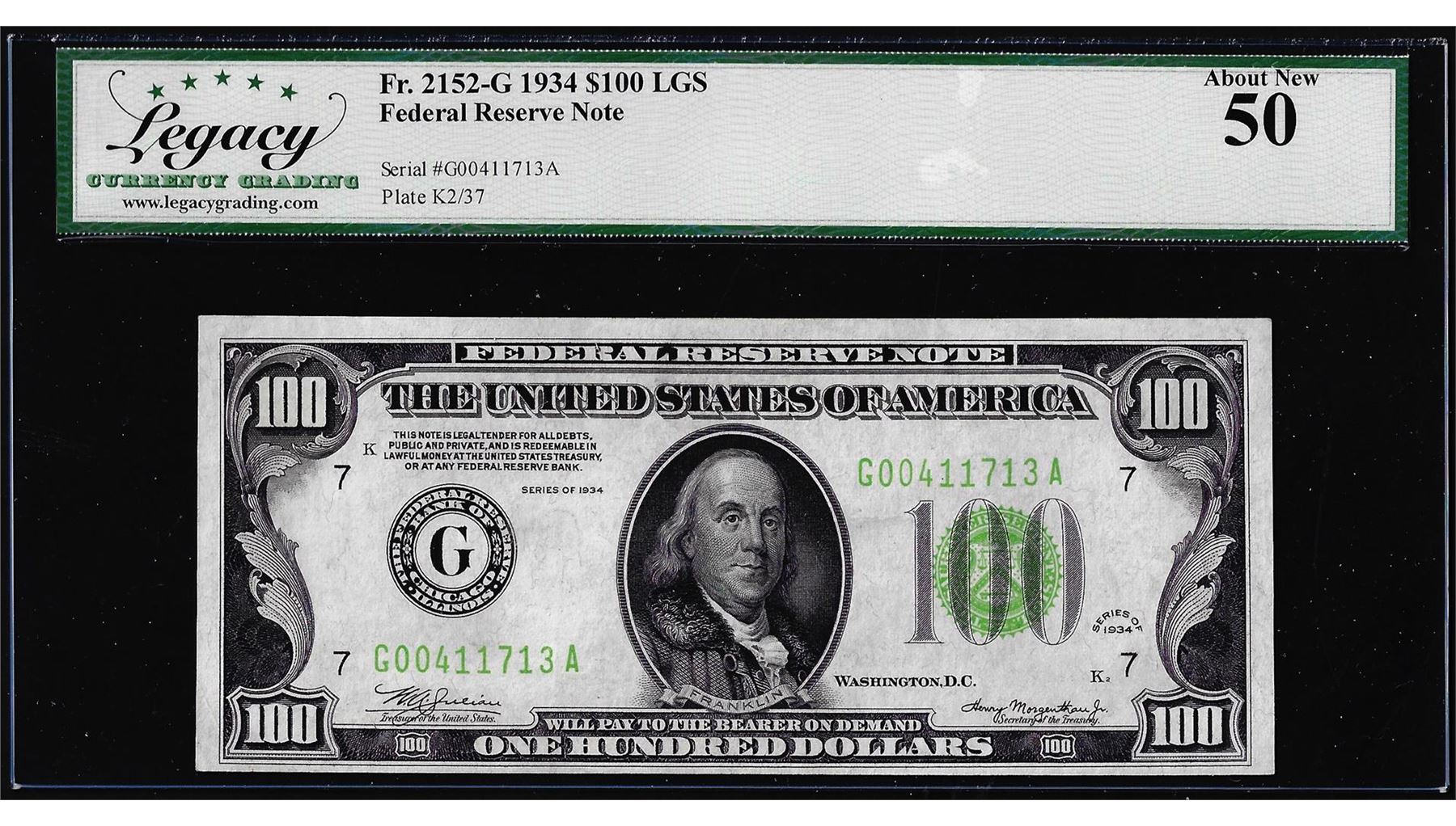 1934 $100 Federal Reserve Note Chicago LGS Fr.2152-G Legacy About New 50