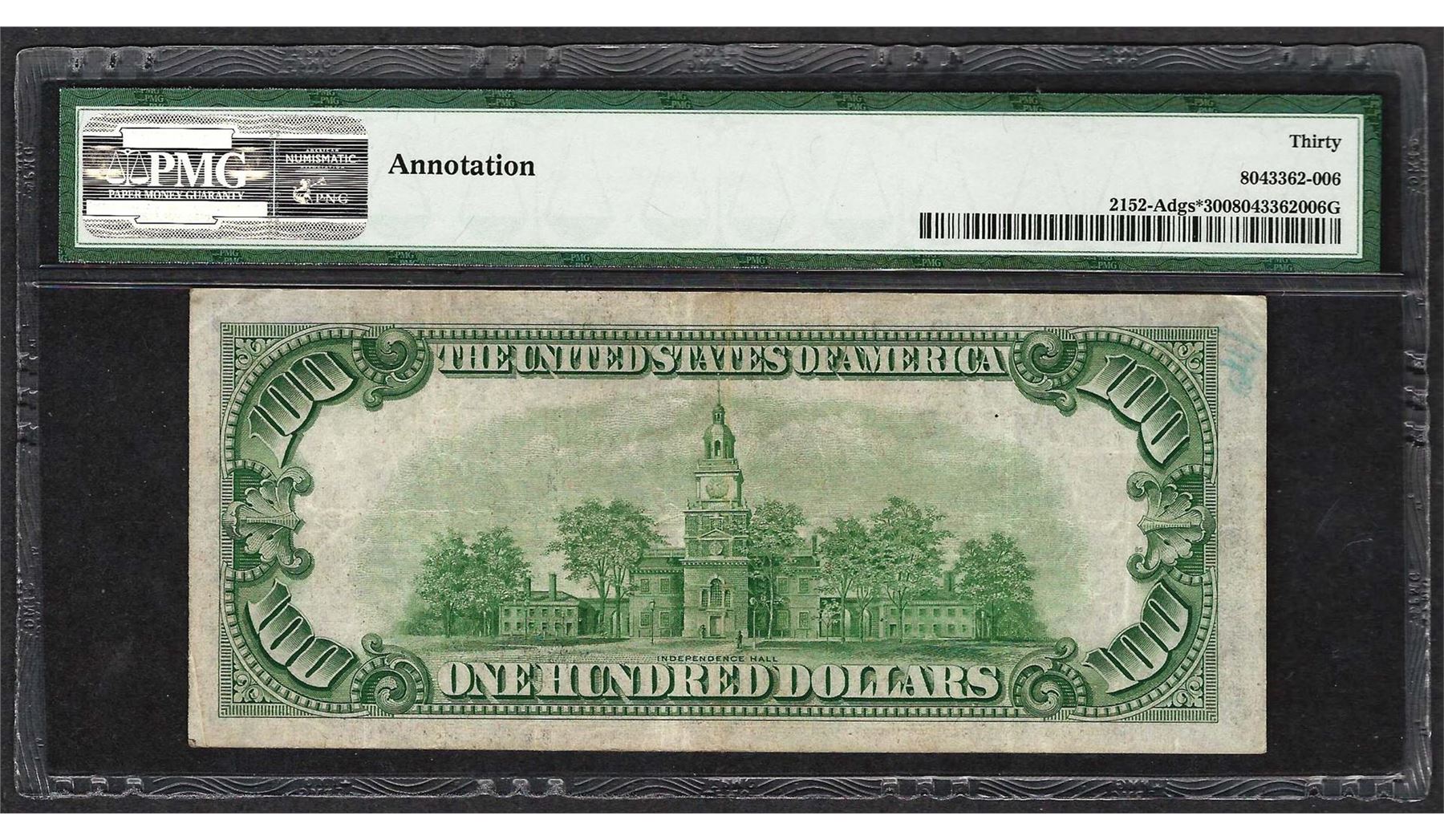 One 1934 $100 Federal Reserve STAR Note Fr.2152-A PMG Very Fine 30. PMG Certified.
