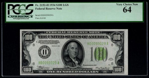 One 1934 $100 St Louis Federal Reserve Note PCGS 64.