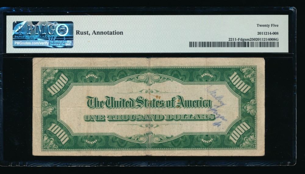 One 1934 $1000 Atlanta Federal Reserve Note PMG 25.