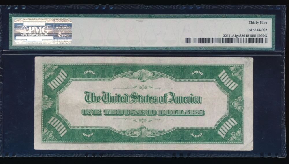 One 1934 $1000 Boston Federal Reserve Bank Note PMG 35.