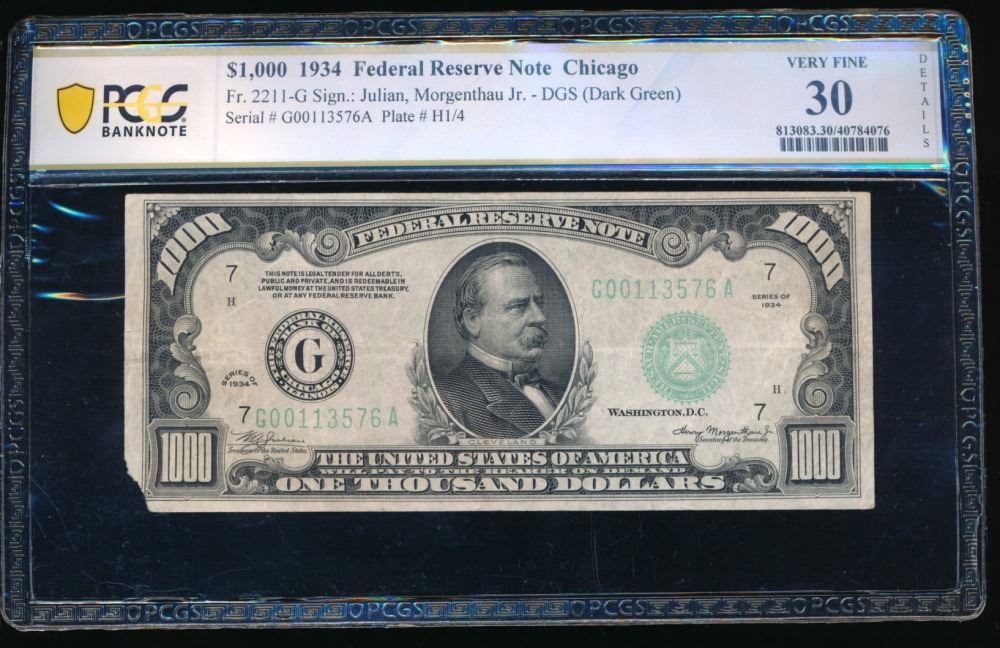 One 1934 $1000 Chicago FRN PCGS 30.
