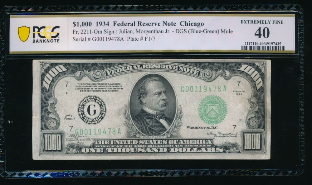 One 1934 $1000 Chicago FRN PCGS 40.