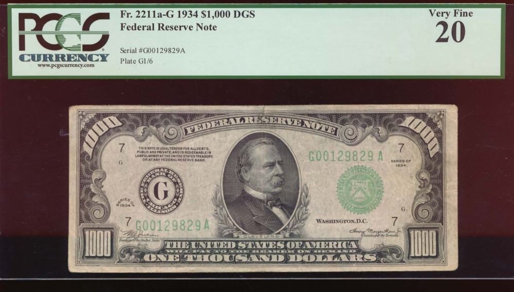 One 1934 $1000 Chicago Federal Reserve Note PCGS 20.
