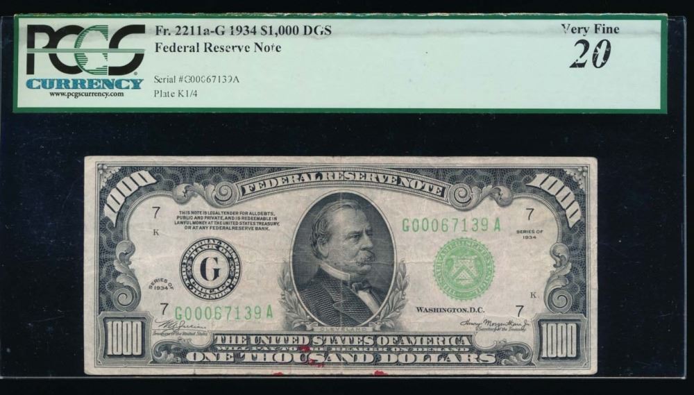One 1934 $1000 Chicago Federal Reserve Note PCGS 20.