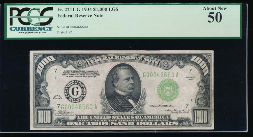 One 1934 $1000 Chicago Federal Reserve Note PCGS 50.