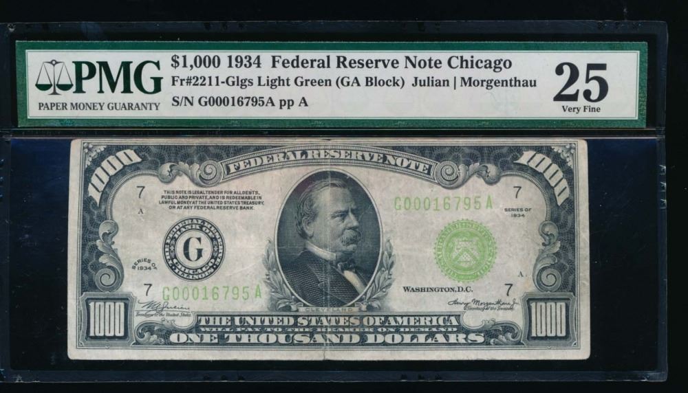 One 1934 $1000 Chicago Federal Reserve Note PMG 25.