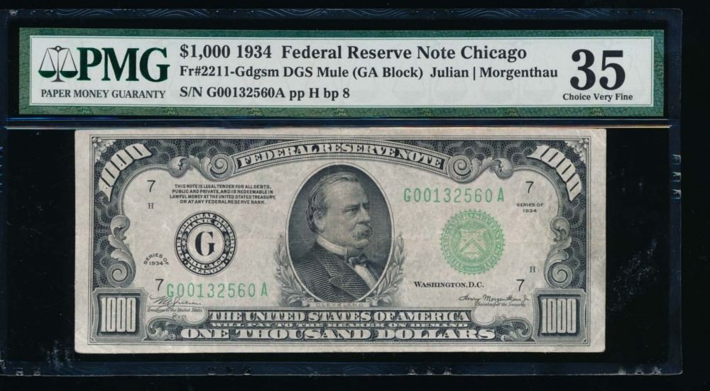One 1934 $1000 Chicago Federal Reserve Note PMG 35.