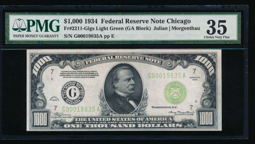 One 1934 $1000 Chicago Federal Reserve Note PMG 35.