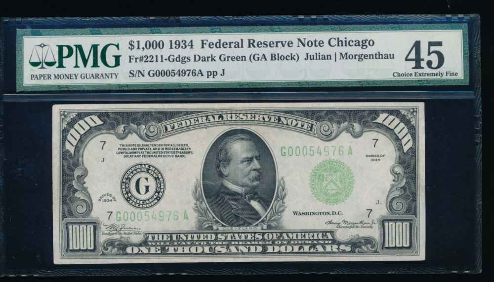 One 1934 $1000 Chicago Federal Reserve Note PMG 45.