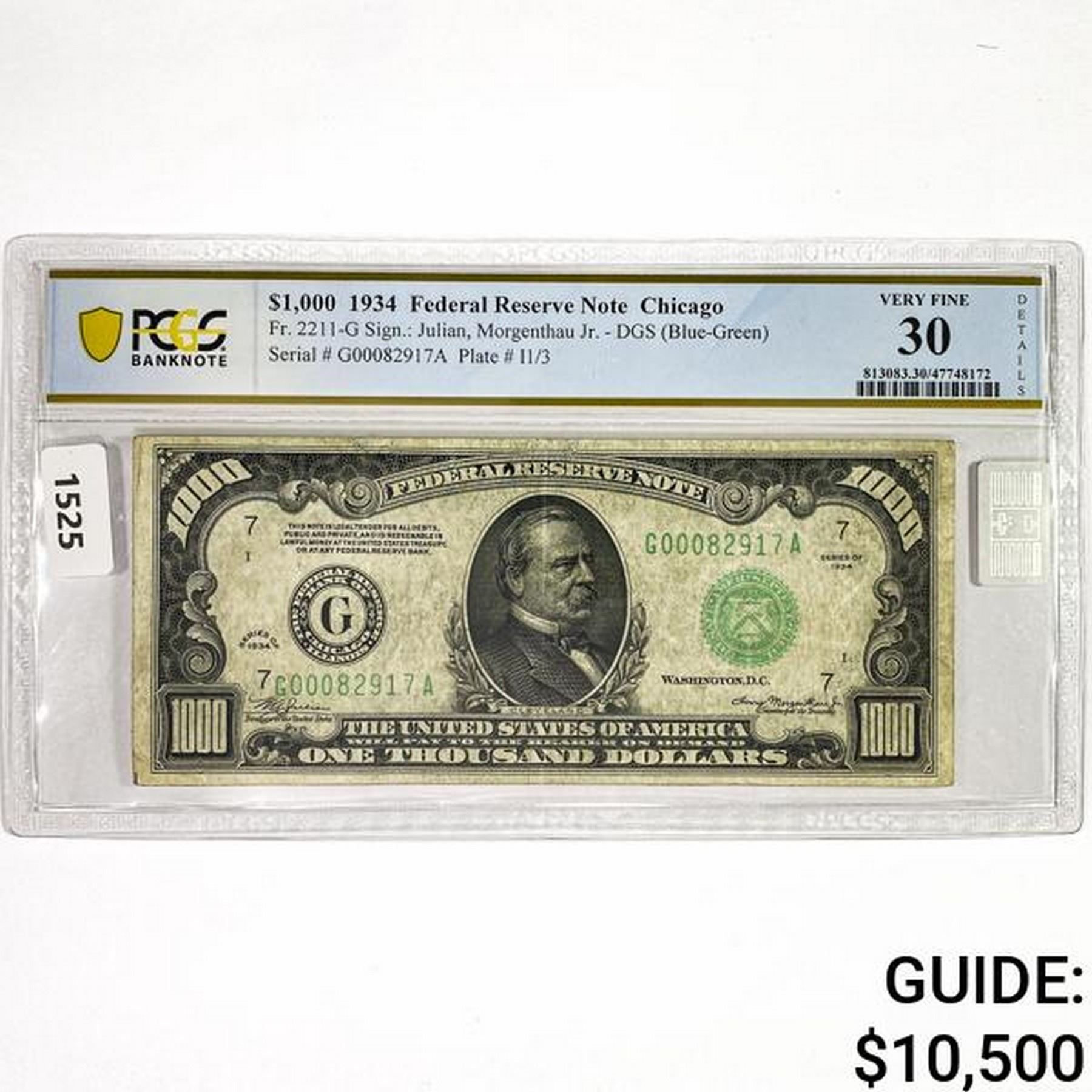 1934 $1000 Fed. Reserve Note PCGS VF30 Details