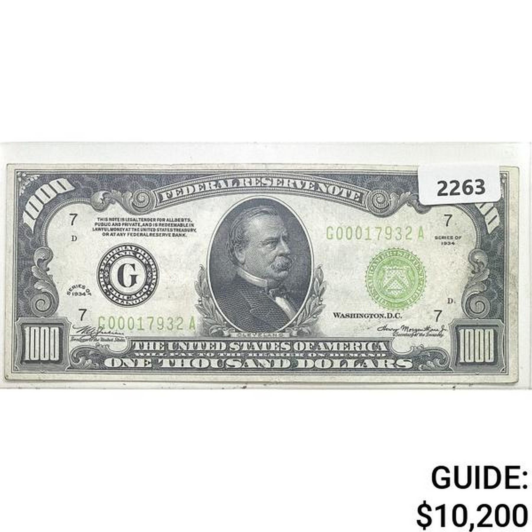 1934 $1000 Federal Reserve Note - Bank of Chicago