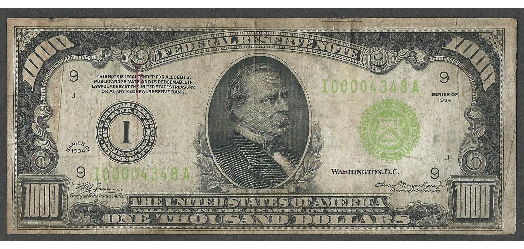 One 1934 $1000 Federal Reserve Note Minneapolis