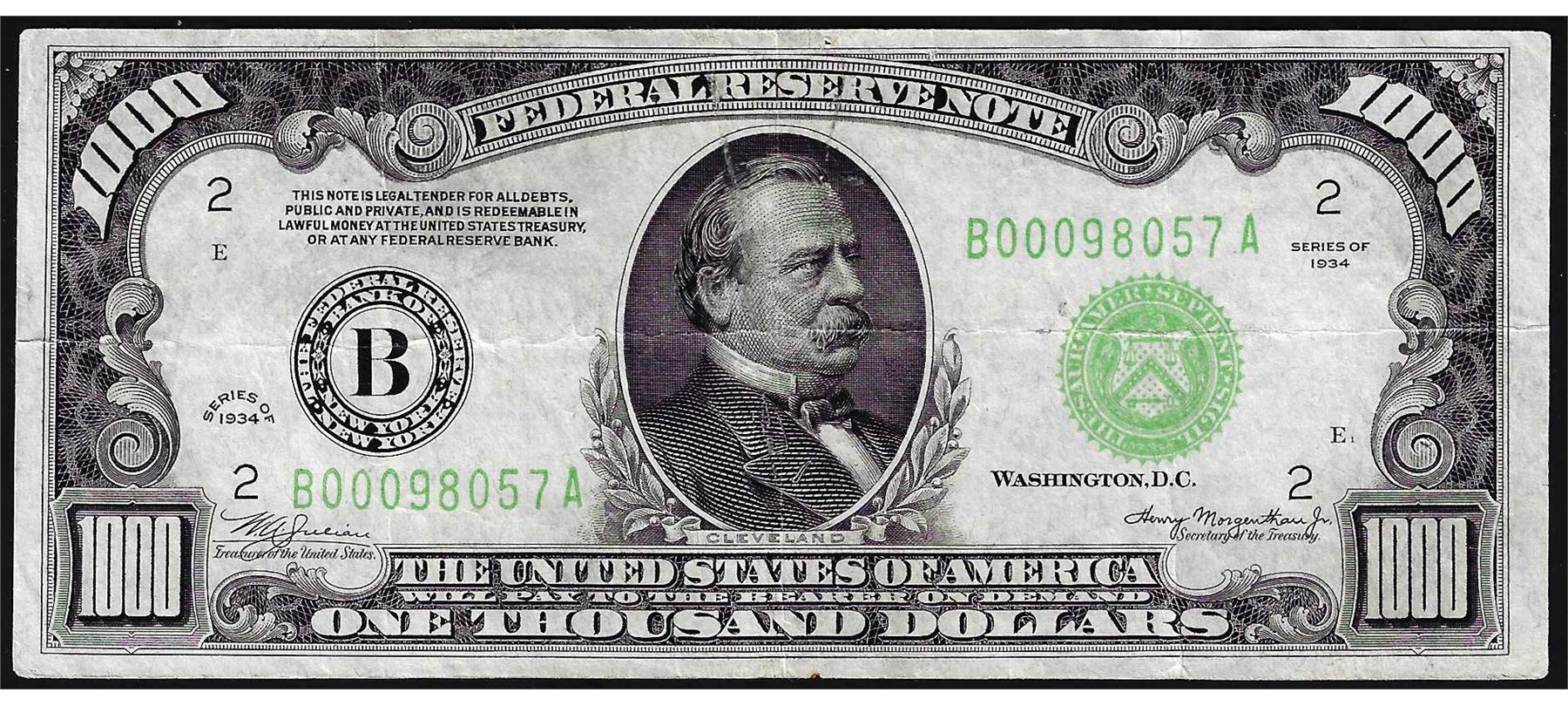 One 1934 $1000 Federal Reserve Note New York.