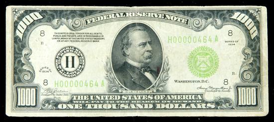 1934, $1000 Federal Reserve Note. St. Louis. . Fr-2211-H. Very Good.