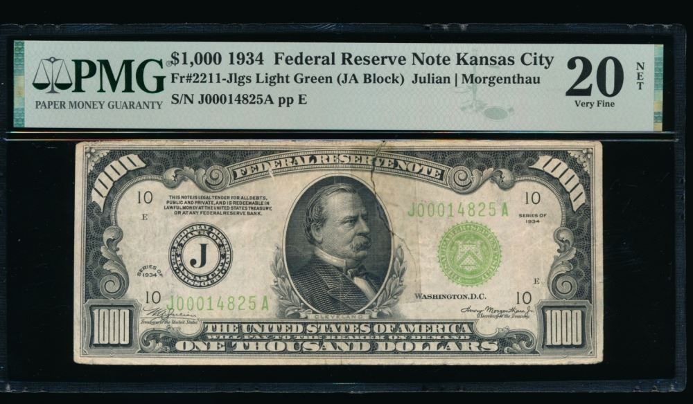 One 1934 $1000 Kansas City FRN PMG 20NET.