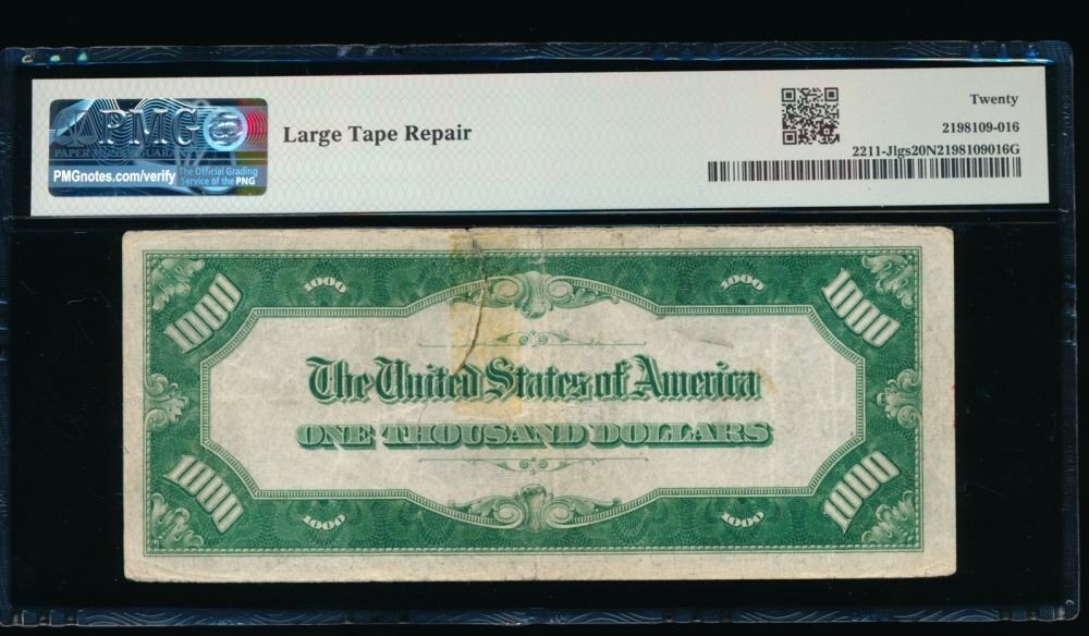 One 1934 $1000 Kansas City FRN PMG 20NET.