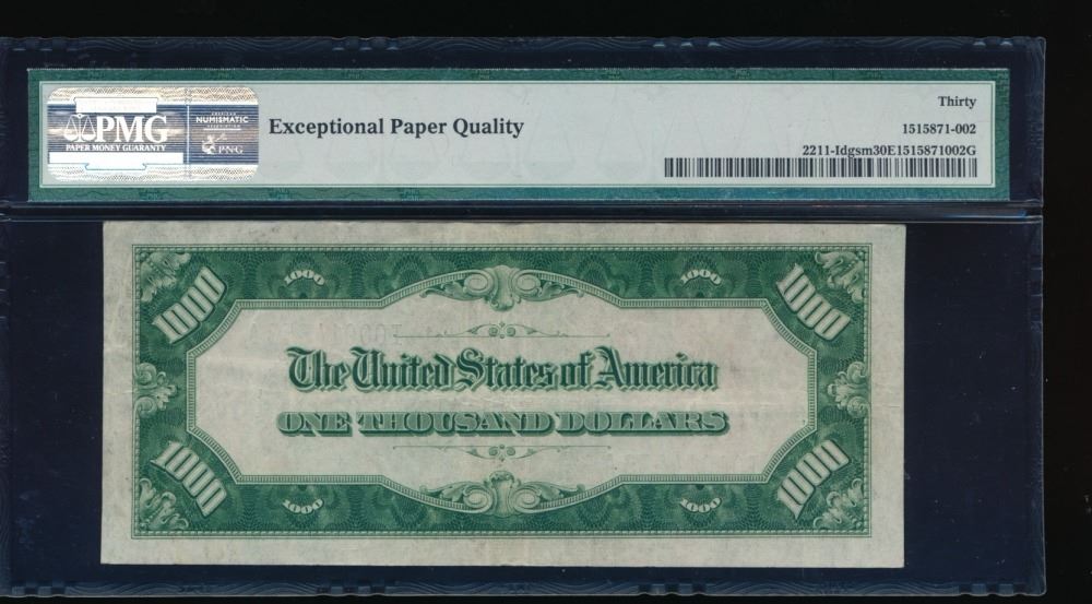 One 1934 $1000 Minneapolis Federal Reserve Note PMG 30EPQ.