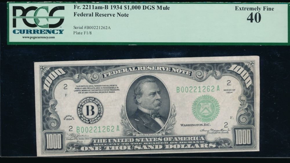 One 1934 $1000 New York Federal Reserve Note PCGS 40.