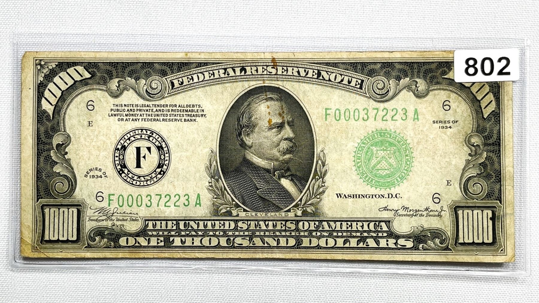1934 $1000 One Thousand Federal Reserve Note