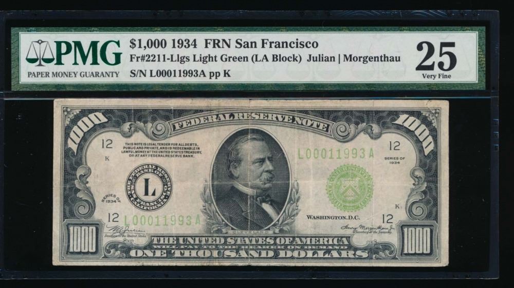 One 1934 $1000 San Francisco Federal Reserve Note PMG 25.