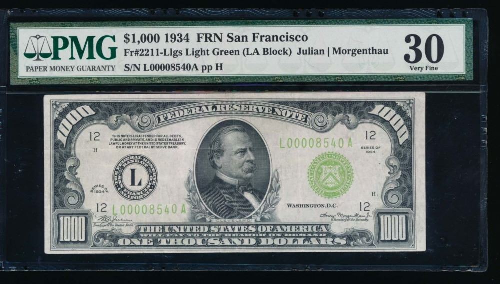 One 1934 $1000 San Francisco Federal Reserve Note PMG 30.