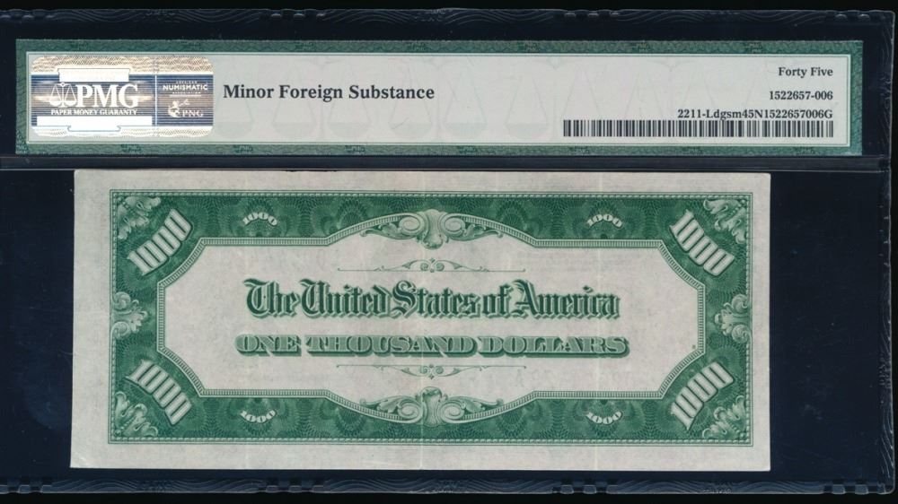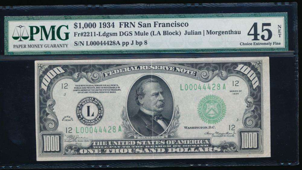 One 1934 $1000 San Francisco Federal Reserve Note PMG 45NET.