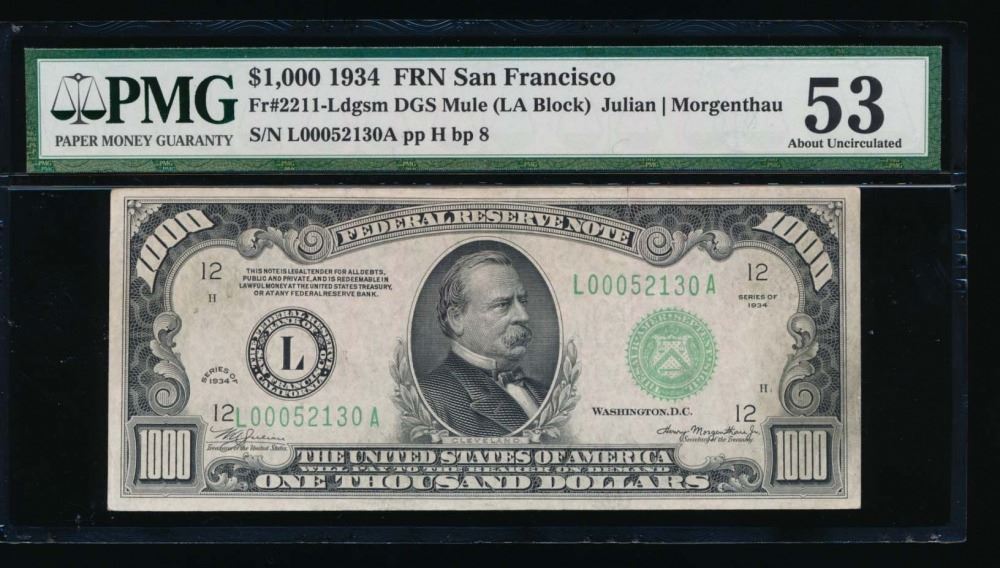 One 1934 $1000 San Francisco Federal Reserve Note PMG 53.